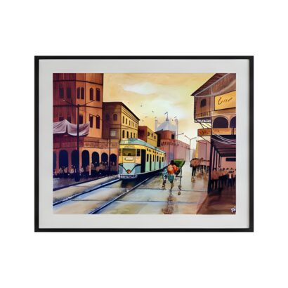 This print comes professionally framed in a sleek black border with a white matte, ready to hang in your living room, hallway, or office. Perfect for lovers of urban landscapes, vintage transport, or cultural art, this piece not only decorates but also tells a story of tradition, movement, and timeless city spirit.